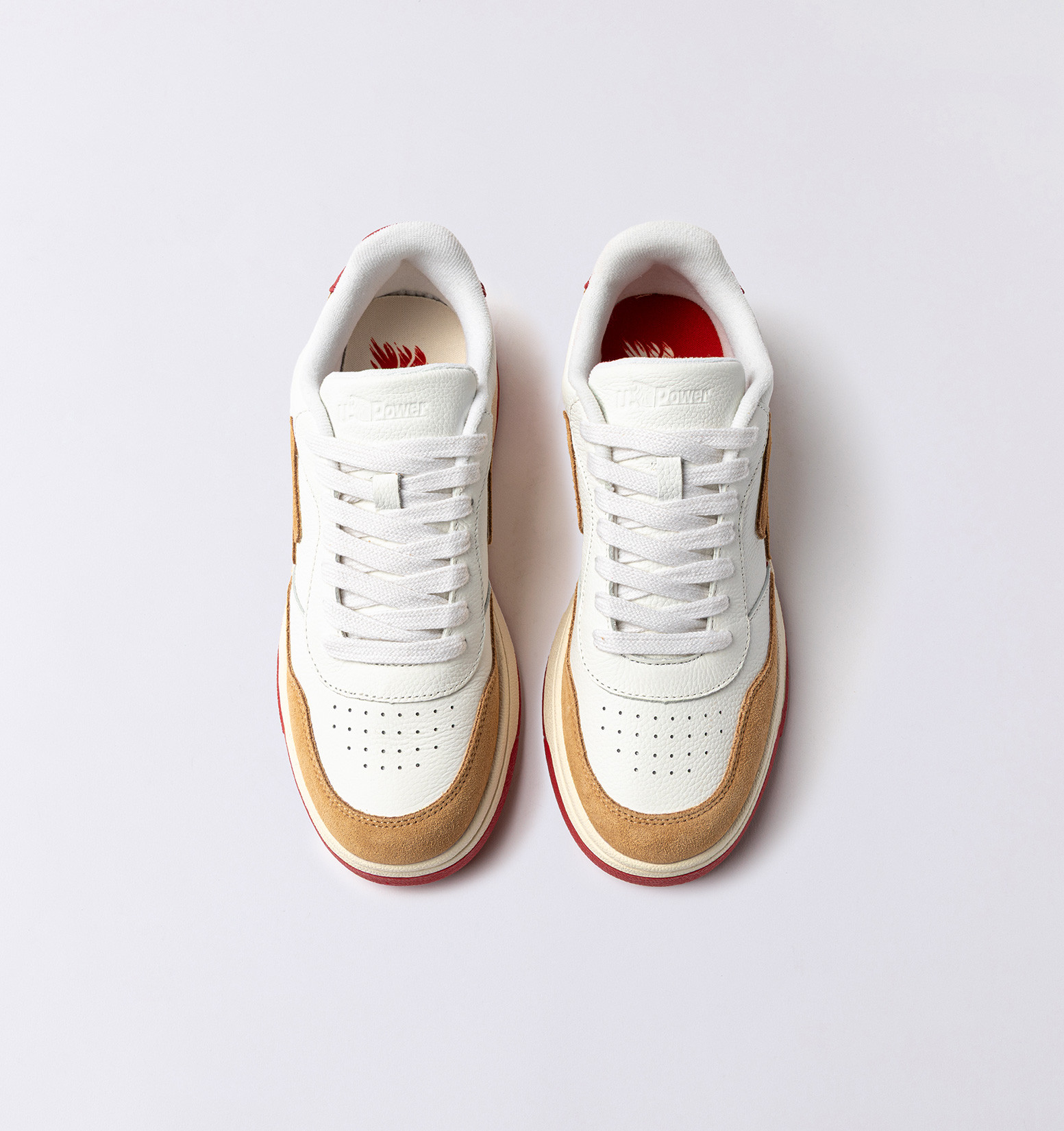 Dalle linee semplici ed essenziali che ricordano il mondo del retro-tennis, è realizzata con materiali pregiati: la morbida pelle pieno fiore, gli inserti in suede e la suola con fondo a cassetta, rinforzata da robuste cuciture, garantiscono comfort e resistenza a questo style rendendolo attuale e perfetto per un utilizzo urban.